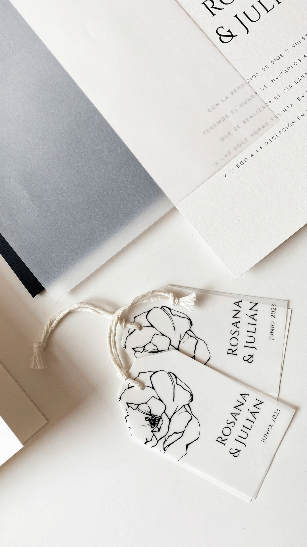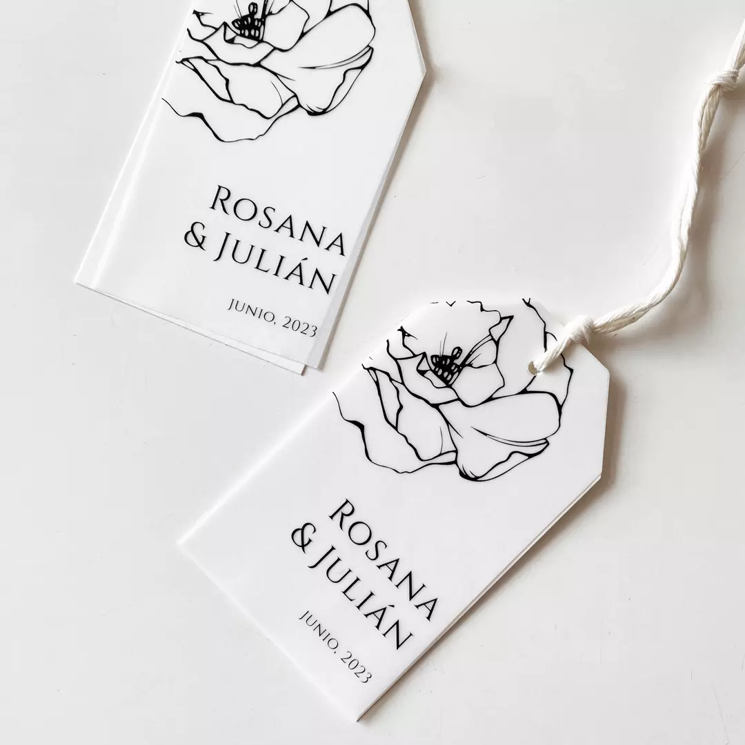 Personaliza tus recuerdos o souvenir de boda con estos tags impecables, de diseño contemporáneo, materiales de lujo, elementos gráficos sencillos y sofisticados a la vez, tipografía elegante y moderna.