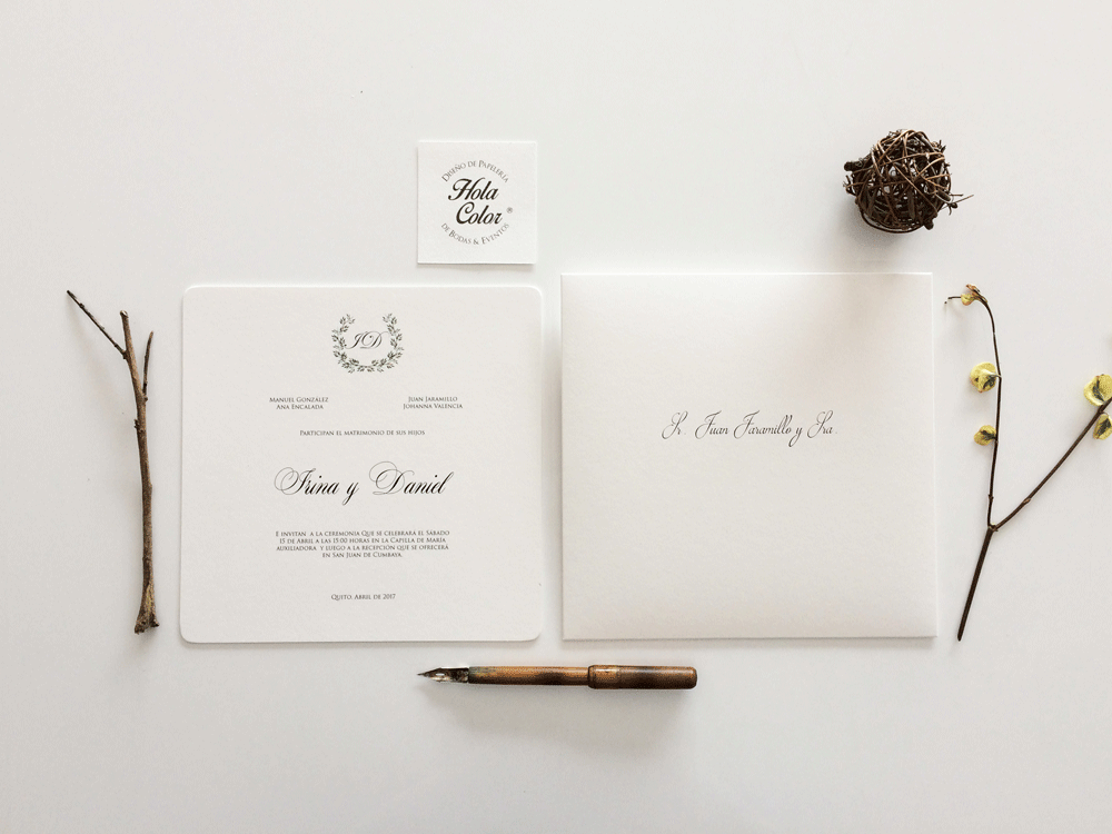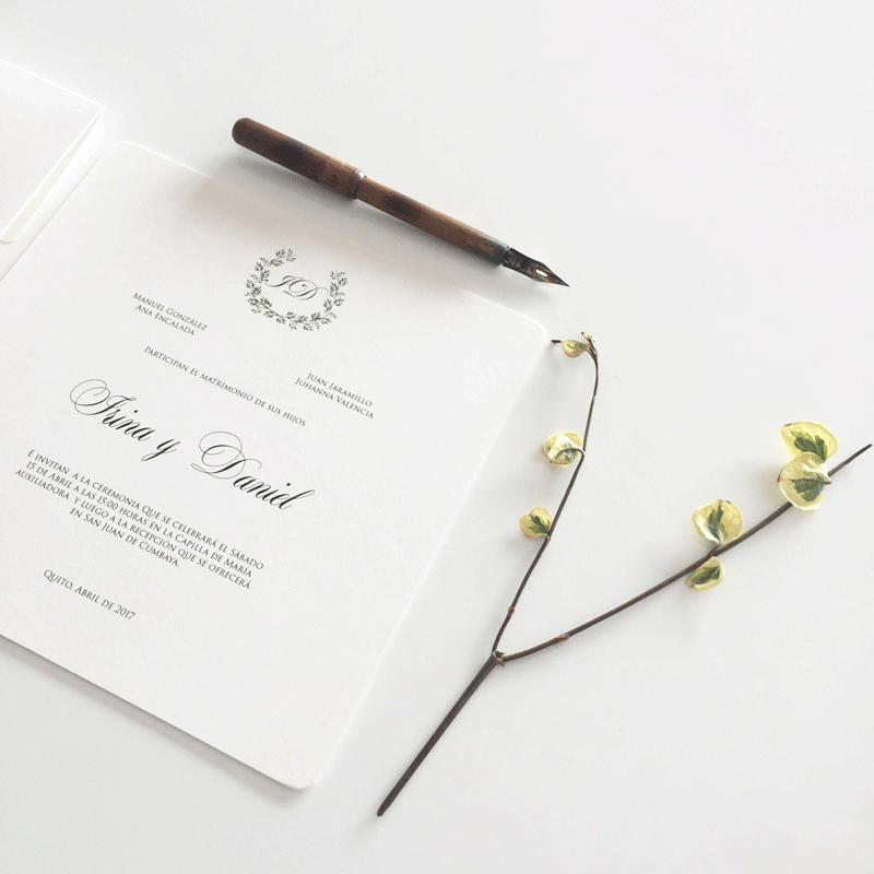 Materiales: Cartulina Premium texturada en tono blanco crudo de 250grsCartulina Premium texturada en tono blanco crudo de 250grsTarjeta para participación, cróquis y otros adicionales se venden por separado.