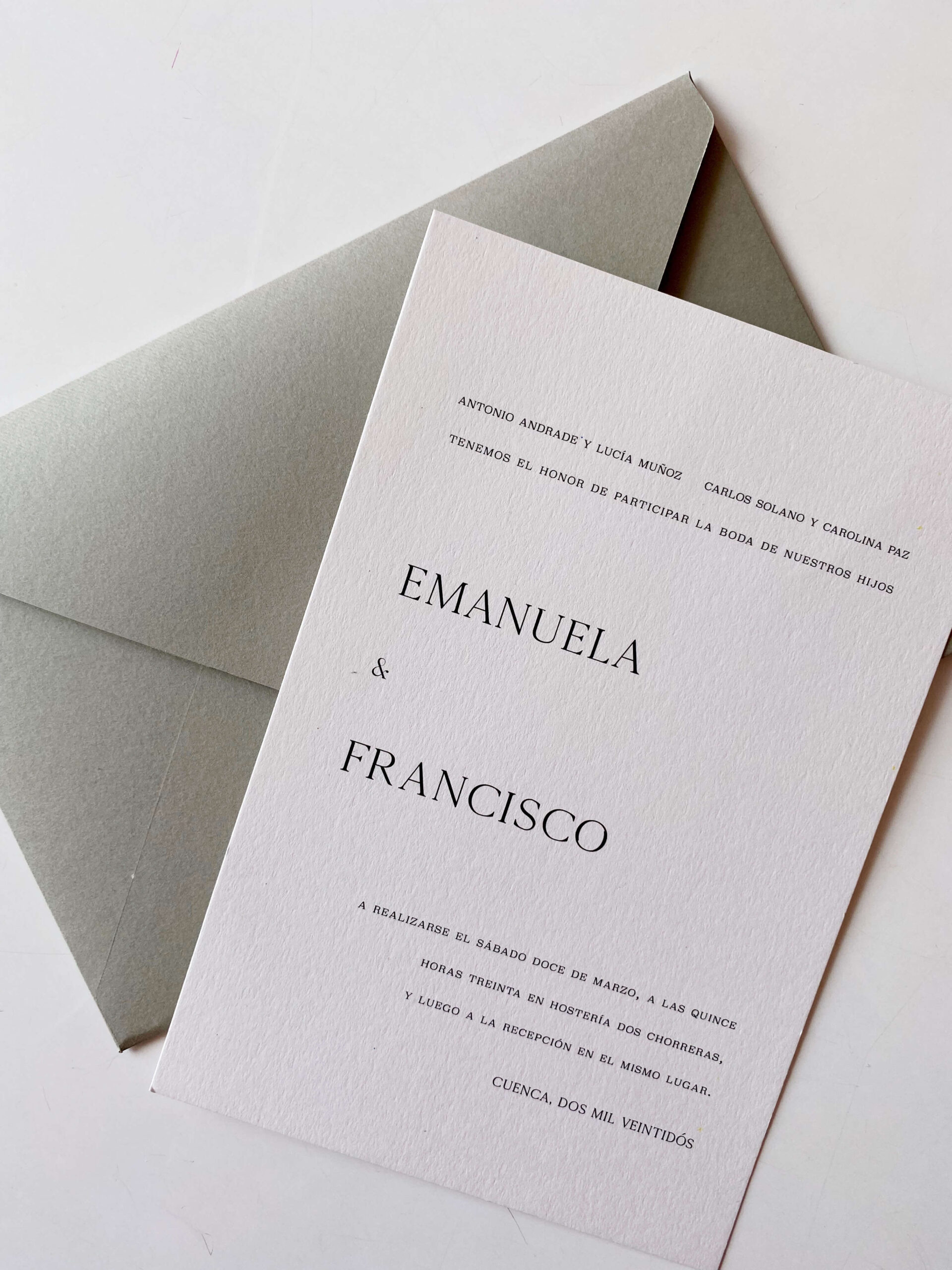 Materiales: Papel Premium, Italiano de 250grs.Color Sage Green y Ivory algodón.