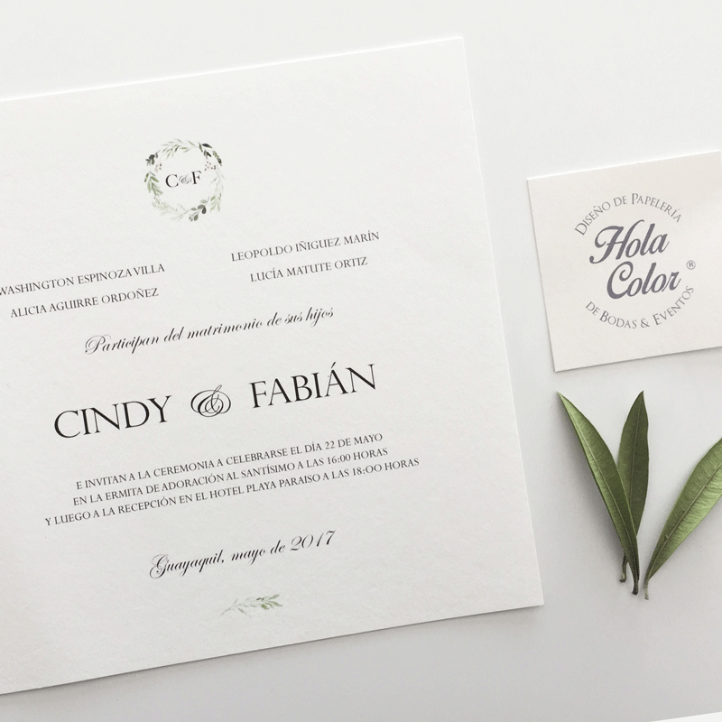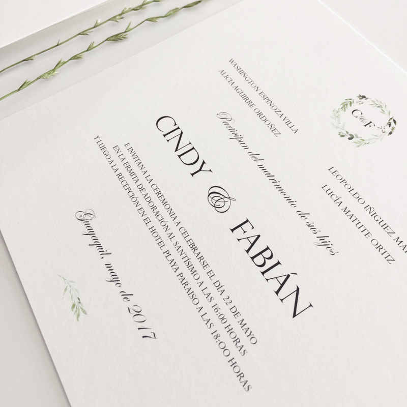 Materiales :Cartulina Premium texturada en tono blanco crudo de 250grsTarjeta para participación, cróquis y otros adicionales se venden por separado. Descuentos en pedidos mayores a 75 unidades.