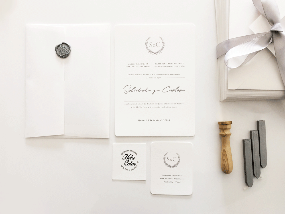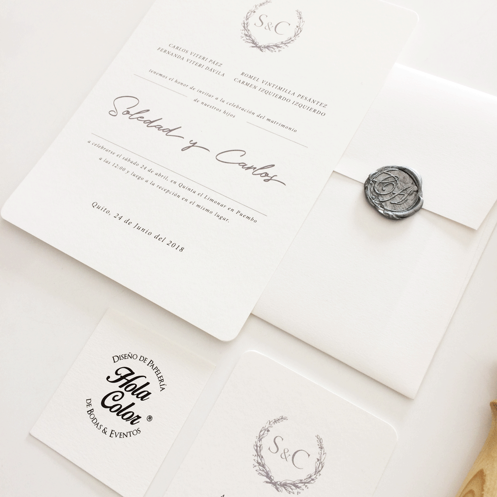 Materiales: Cartulina Premium texturada en tono blanco crudo de 250grsNota: El sello de lacre de las fotografías es opcional y se cotiza por separado.Tarjeta para participación y cróquis se venden por separado. Descuentos en pedidos mayores a 75 unidades. ¡Recuerda que todos los productos de nuestra sección Accesorios, como menús, números de mesa, libros de firmas, etc., pueden personalizarse de acuerdo a la gráfica de tus Invitaciones!