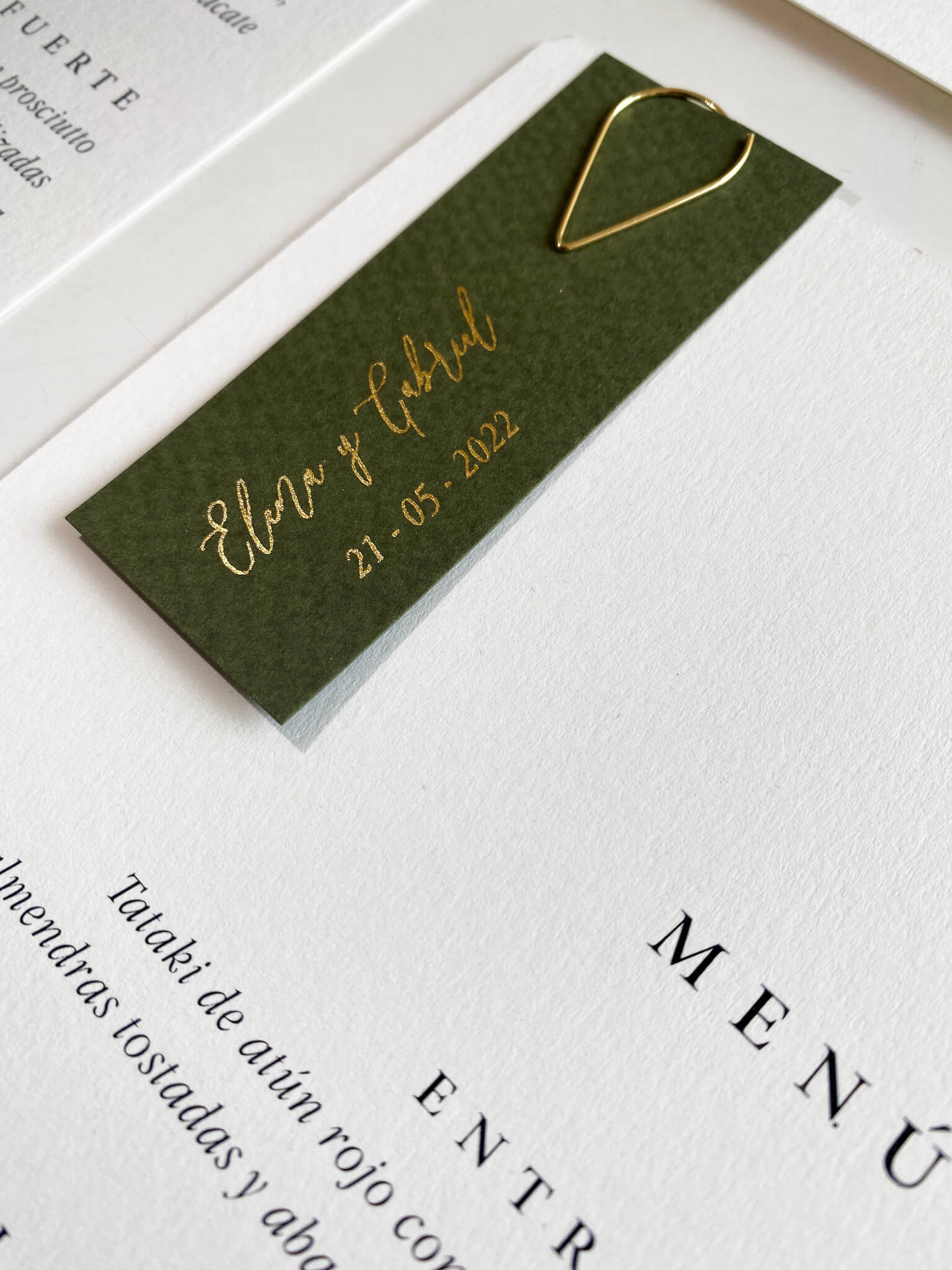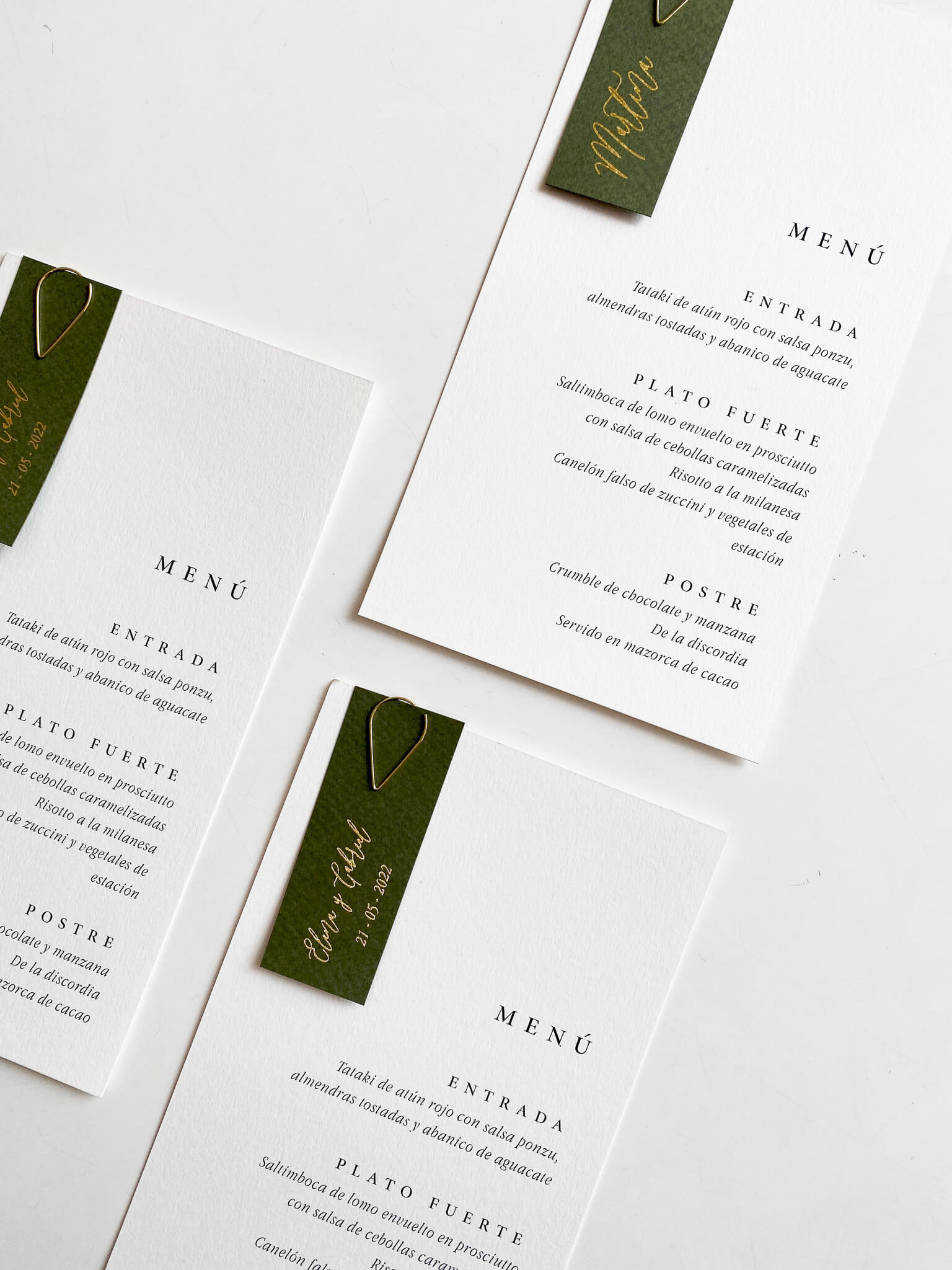 Incluye: Menú impreso a un lado. Tag Clip dorado