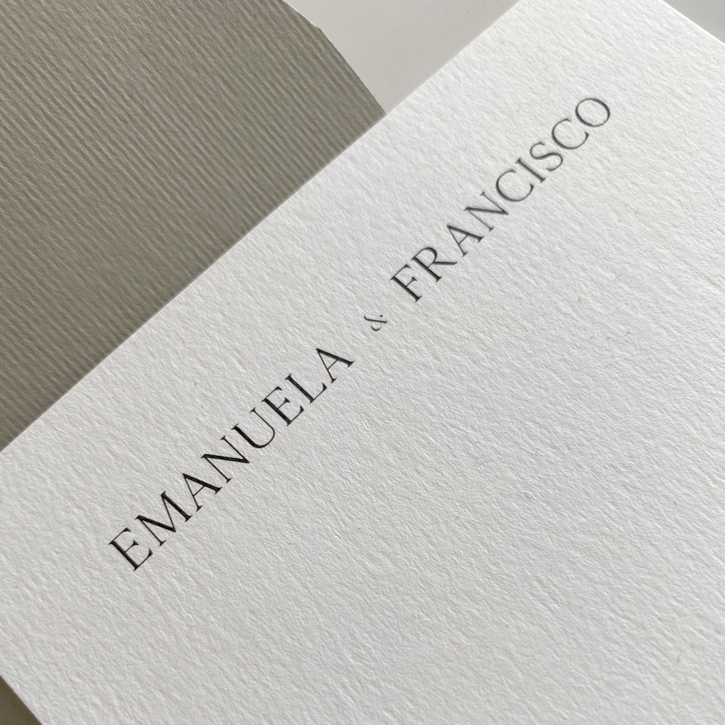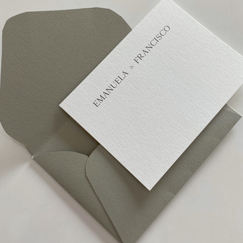 Sobre color Sage, tarjeta blanco crudo de algodón.