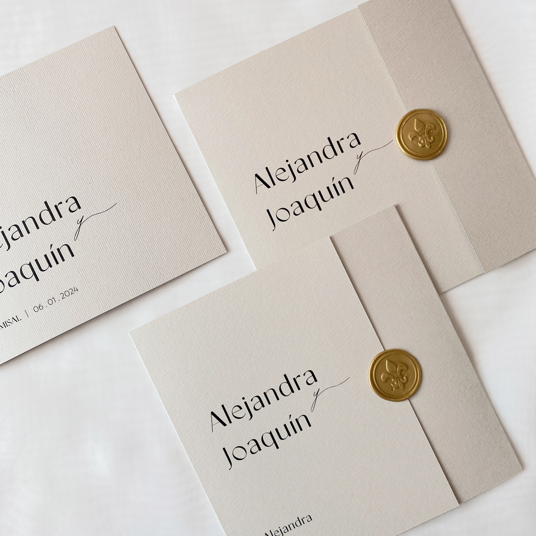 Incluye medalla de lacre dorado con motivo Flor de Lis