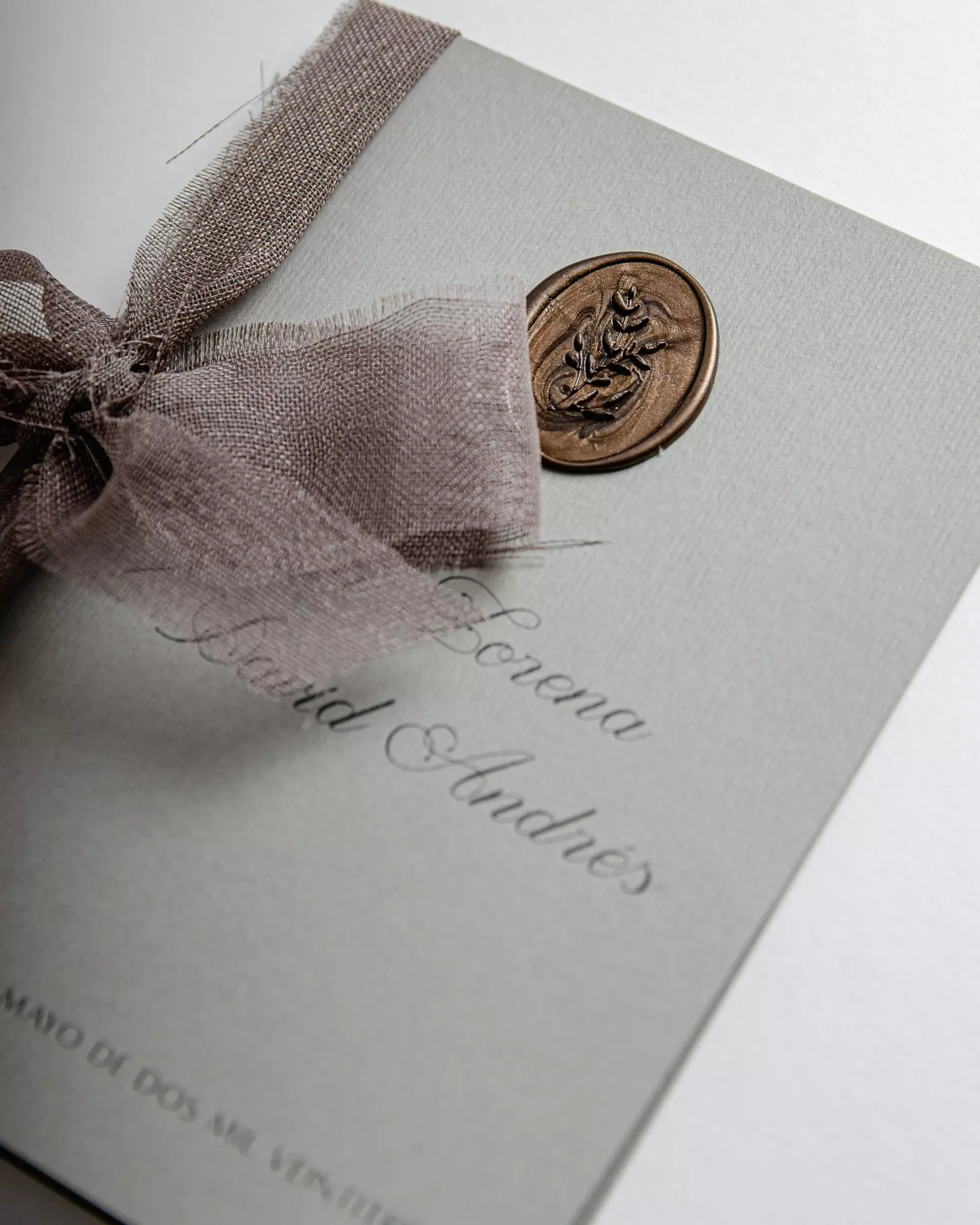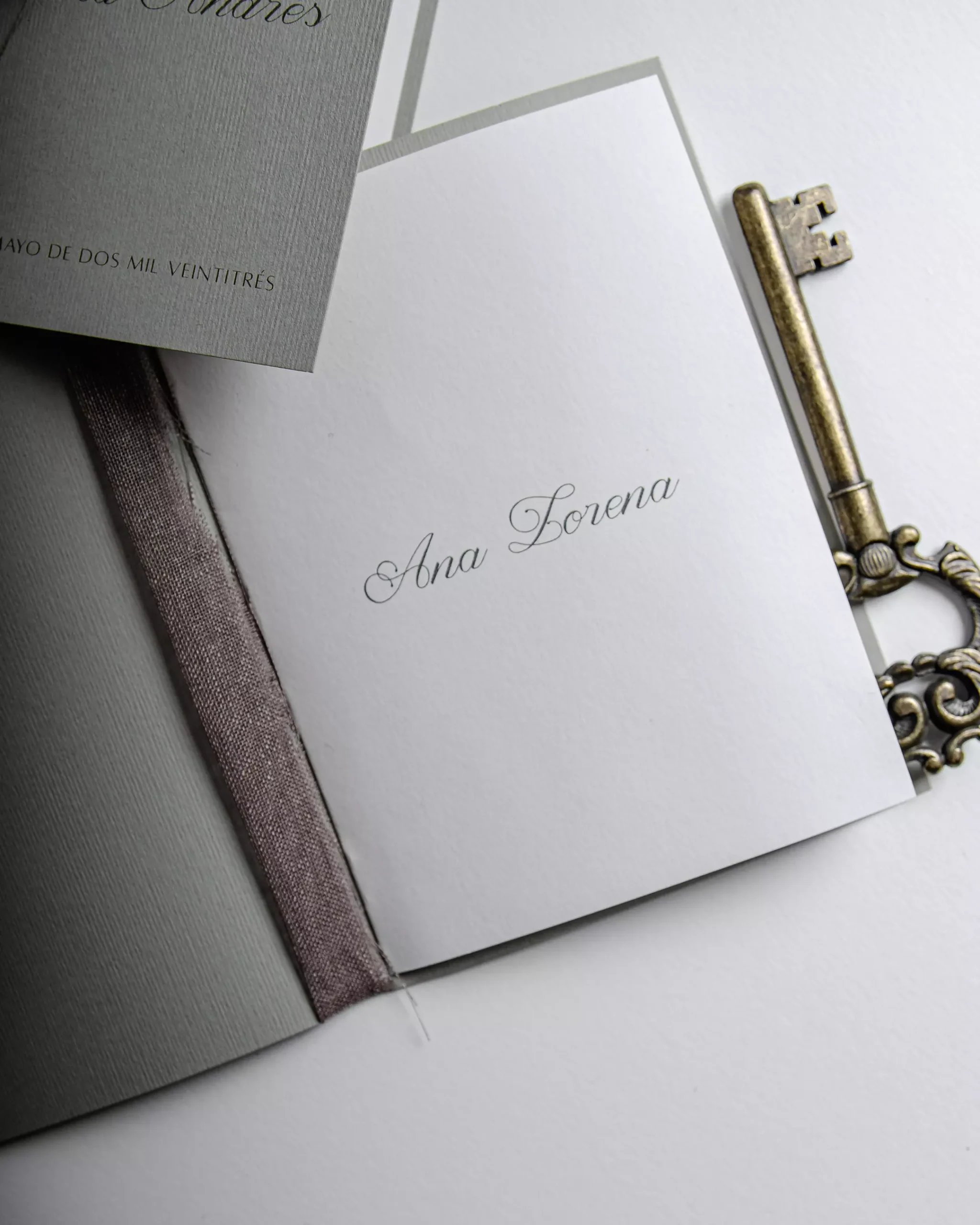 Esta es una pieza de arte en papelería, cuidado al detalle cada aspecto para que sea protagonista en la ceremonia, sesión de fotos y por supuesto, en tu caja de recuerdos.